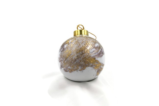 La boule a été cuite à 820 ° pour fixer la couleur rouge puis à 800 ° pour fixer l'or.